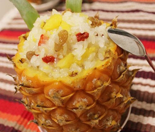 这款菠萝饭做起来不复杂,也没有油烟之虞,准备好后,放到蒸锅里就万事大吉了,别蒸过头就好~不然菠萝容器会拿都拿不起来哦~