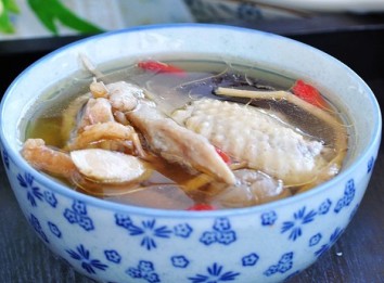 鸡一只,党参、黄芪各30克,红枣25克,桂圆肉15克(或10颗去皮干桂圆),姜片少许,盐少许,清水1.5升。