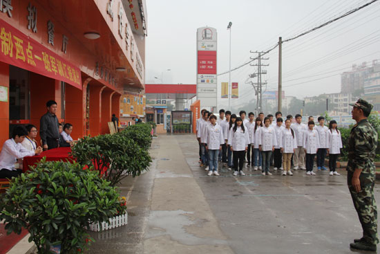 近日,广西华南烹饪学校二年制西点一班为期10天的新生春季军训活动圆满顺利结束了。长达10天的军训生活让刚刚踏入校园的学子们尝到了艰辛却也学会了坚强。今天是他们军训生活的最后一天,他们用最饱满的热情向校领导及各位教官展现了自己的军训成果。