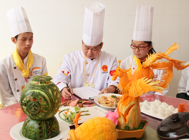 广西华南烹饪学校金牌五班通过此次宴席考核展台,不仅能够展示班级的宴席制作能力,提高华南烹饪学子的团体协作能力,更能进一步增强学子对宴席制作知识的掌握。广西华南烹饪学校将继续为培养更多符合社会需要的复合型、专业型烹饪高级人才这个目标而不懈努力。对于美食,如果你有话说,如果你想“动手”,那么,亲爱的朋友,广西华南烹饪学校诚邀你的到来,在这里,让我们一起遨游美食的海洋!