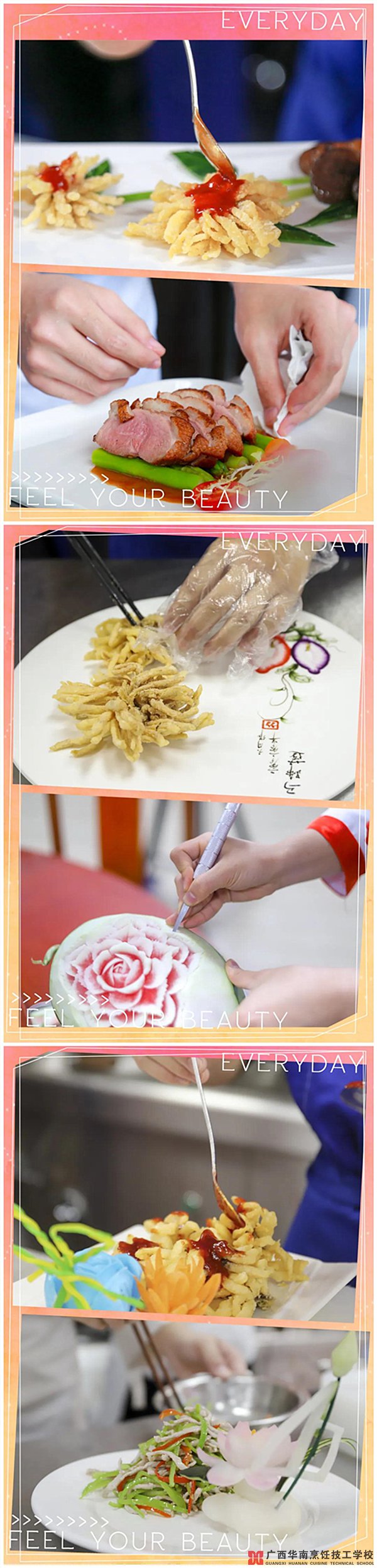 2.烹饪、西餐、西点、中点、雕刻、果酱画……丰富多样的课程造就了每天出产的各色诱人美食,看着看着就陶醉了。于是说,世间最实在的幸福,是人间烟火。