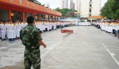 11月3日上午,秋风送爽,天气慢慢凉爽,但学校操场广场前却热火朝天,喜气洋洋,广西华南烹饪学校金牌七班新生军训会操表演在这里隆重举行。学校教务主任黄盛大师,大学路校区西点教研主管黄五洲、教务科老师黄冲老