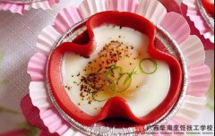 今天,广西华南烹饪技工学校老师为大家带来西式火腿片焗鸡蛋的做法,快去学起来吧! 主料:圆形火腿片4片、鸡蛋4个。 调料:细盐少量、黑胡椒适量、葱花适量。 做法步骤: 1 将所有料理准备就绪,按一个鸡蛋配一片圆